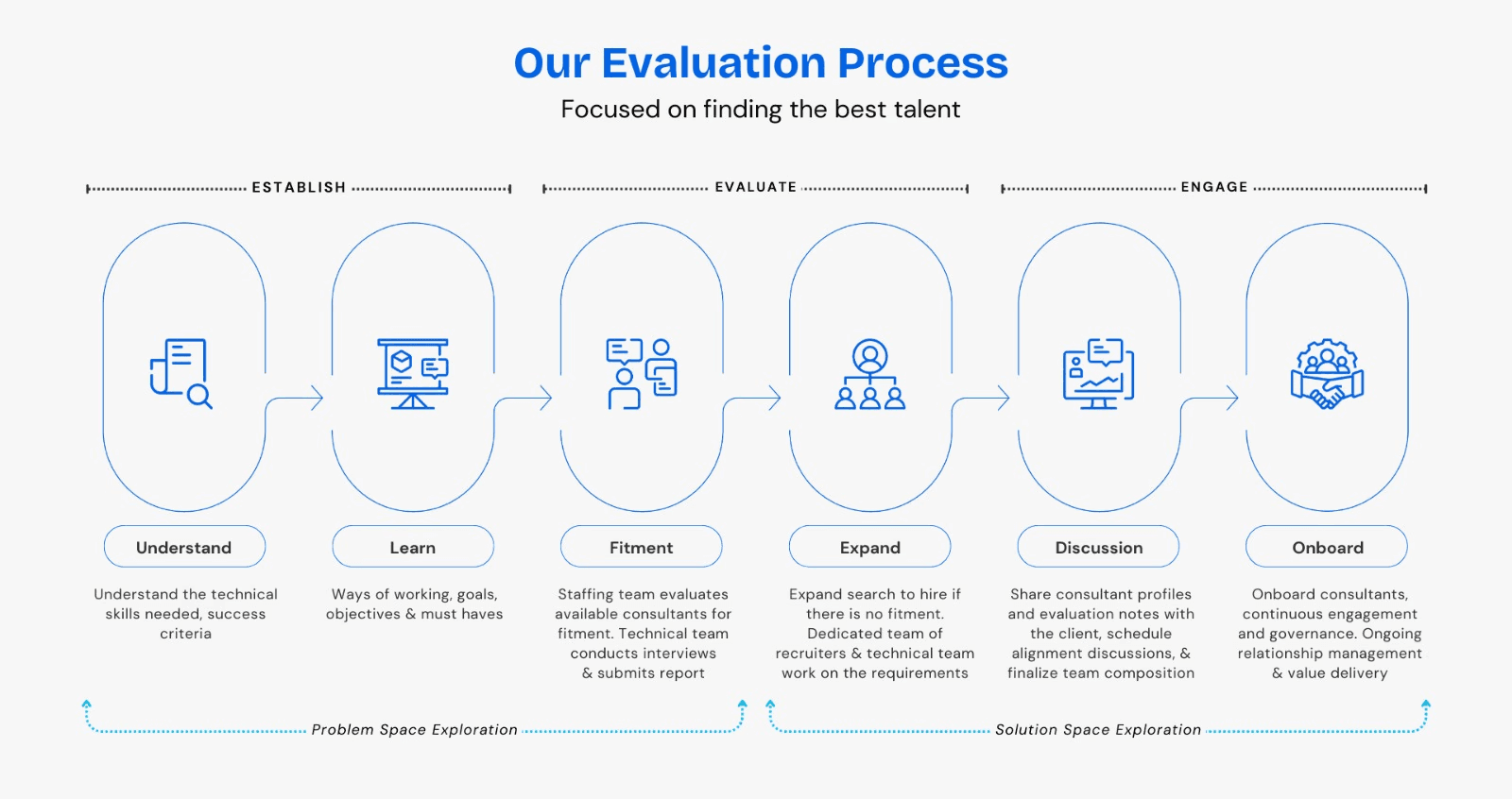 Fit comes first. We hire for cultural alignment and build teams around how your organization runs, so consultants invest in the context, relationships, and are engaged throughout the full lifecycle of your project.